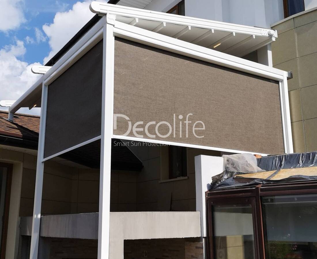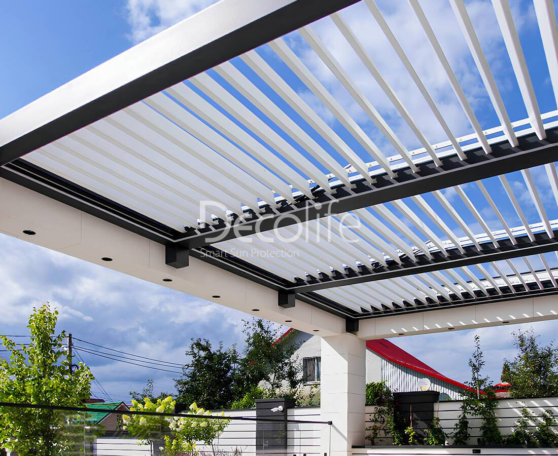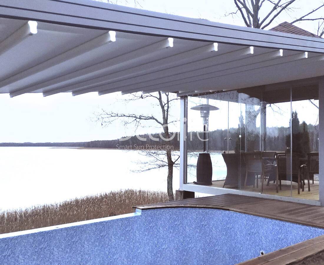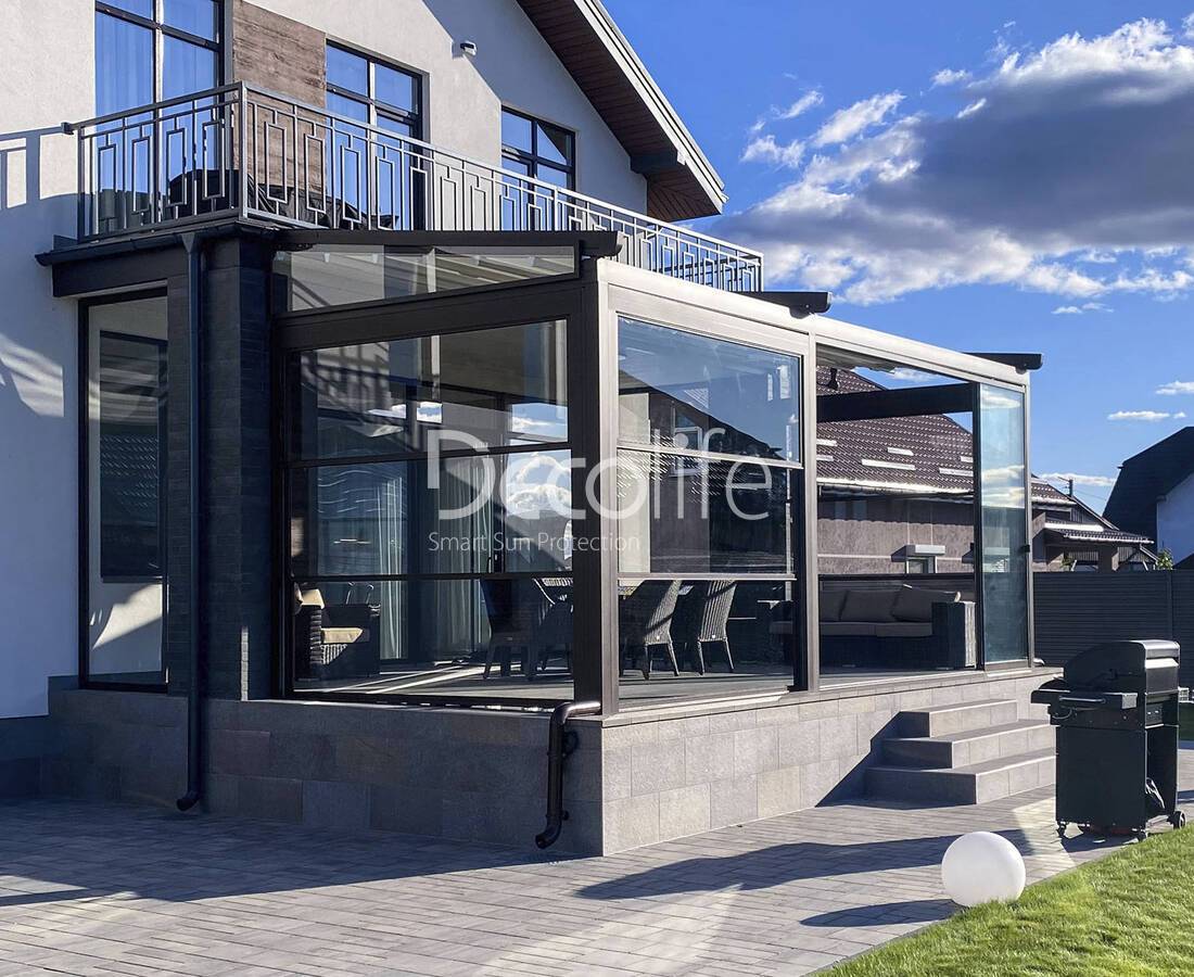 Пергола Decolife B600 PIR + Фасадные жалюзи FZ-44 + Гильотинное W500 и раздвижное S200 остекление - г. Минск
